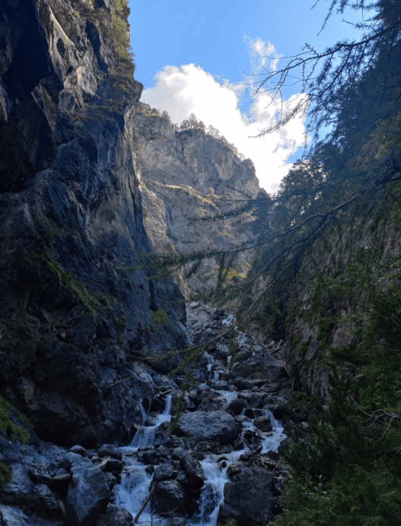 V pátek, poslední den kurzu, jsme byli opět rozdělení na dvě skupiny. Mohli jsme si totiž vybrat, jestli si chceme poslední den strávit na vodě nebo na skalách. Vodáci se vydali na ledovcovou říčku Isel, já a zbytek jsme na koloběžkách dojeli do ferratového parku Galitzenklamm, kde jsme si užili tři ferraty obtížnosti C.