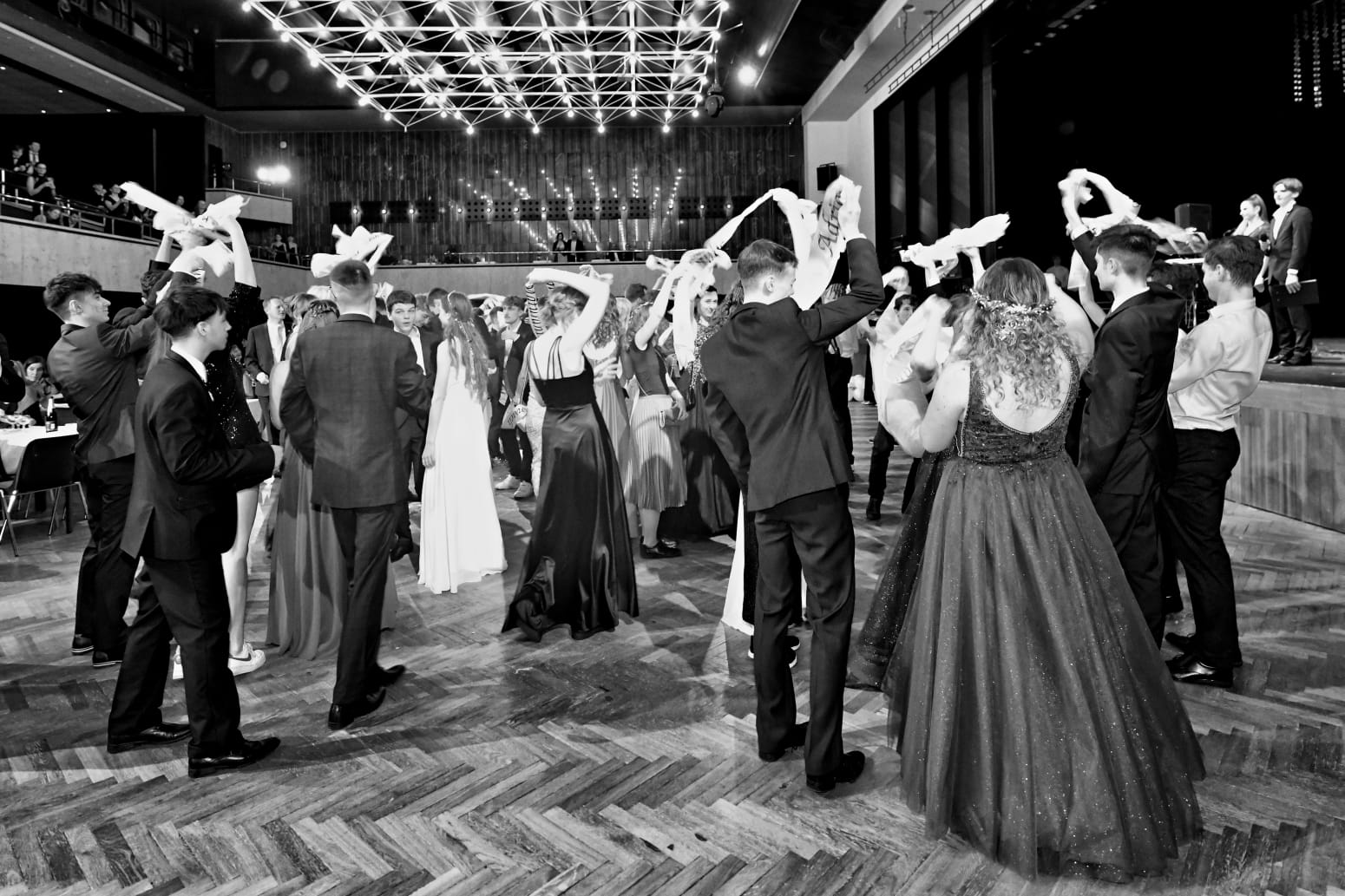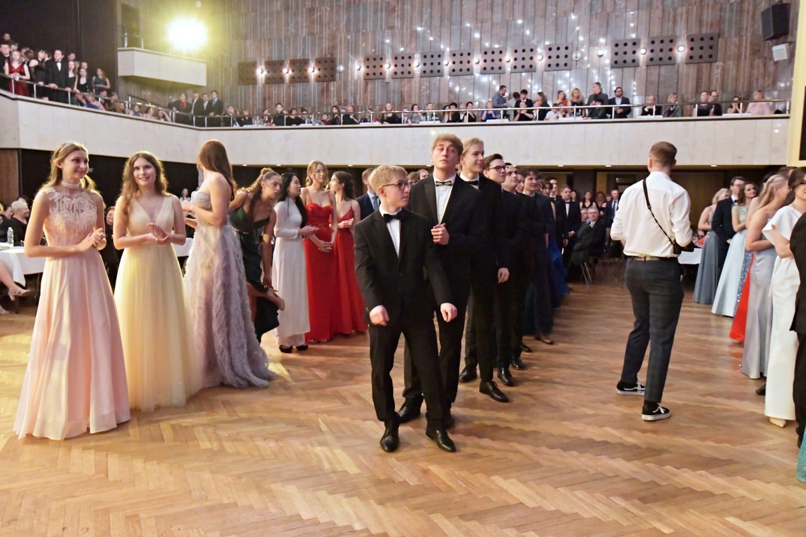 Ale zpět ke plesu: bezprostředně potom, co byli všechny maturantky a maturanti ověnčeni svými šerpami a měli své fotky bezpečně uložené, vyhlásilo moderátorské duo, že prostor v sále mezi stoly je volný pro tanec a maturující se mohou pustit do tance se svými tatínky, maminkami, tetami, babičkami, bratranci z pátého kolene a pradědečky. Netrvalo dlouho a parket se zcela zaplnil rodinnými kruhy a ty se daly do pohybu ve známém rytmu valčíku a následně Škody lásky.