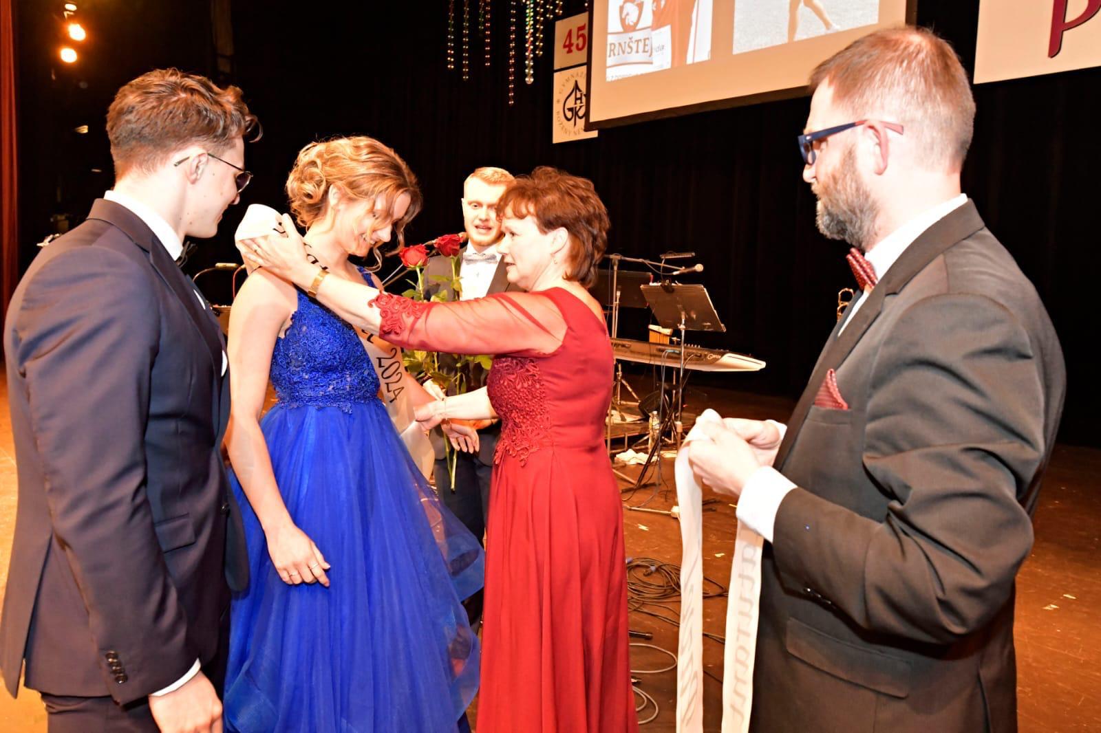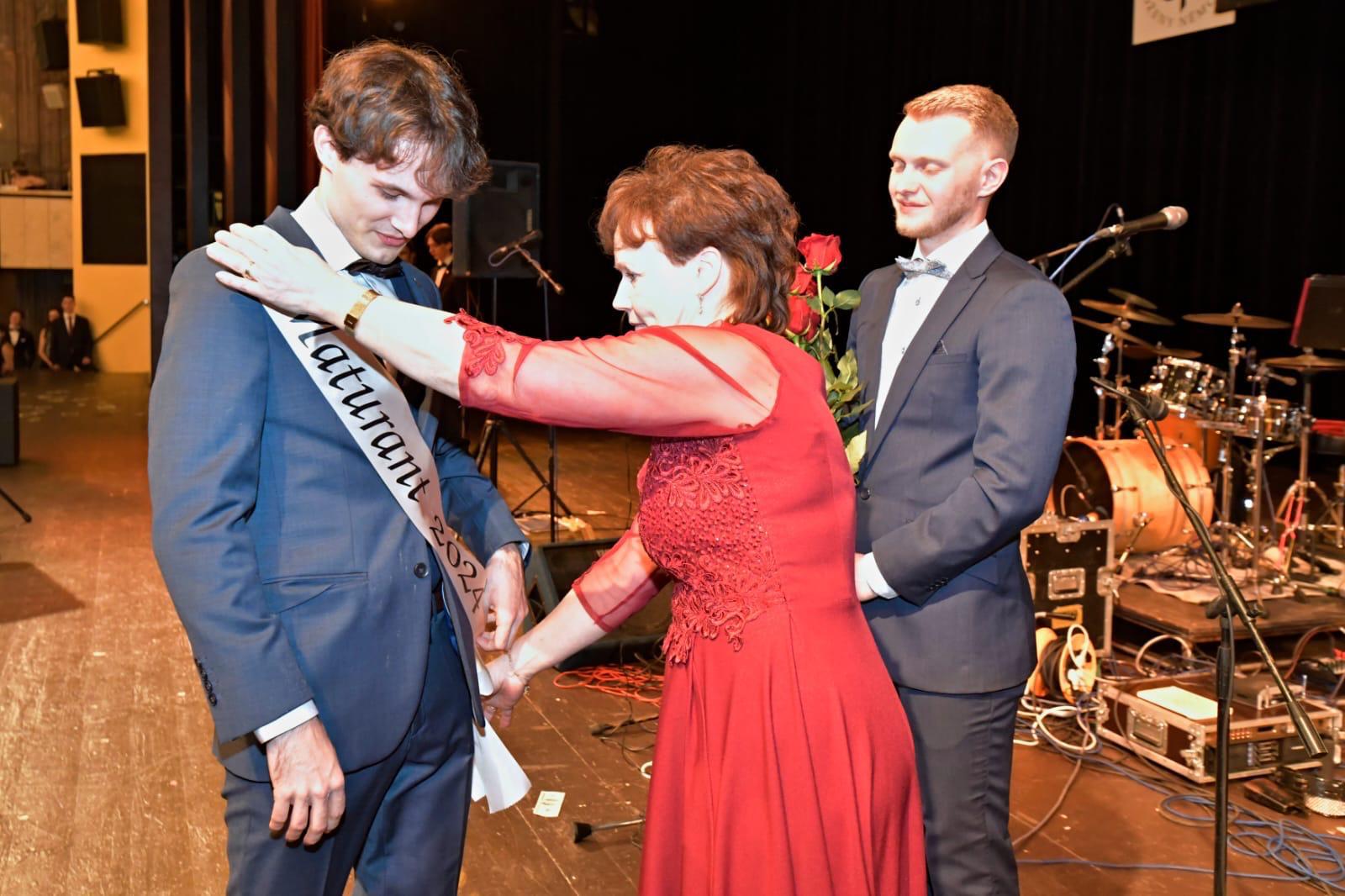 Následovala nejnudnější část večera, a to šerpování. Každá maturantka nebo maturant na pódiu krátce zatančil a převzal šerpu a růži z rukou svých třídních. Všechno to zní moc pěkně a jako nezapomenutelný zážitek, jenomže než si všichni zatančili, vzali šerpy, zařadili si a vyfotili, osazenstvo se unudilo k smrti, protože žádné oživení nepřicházelo.