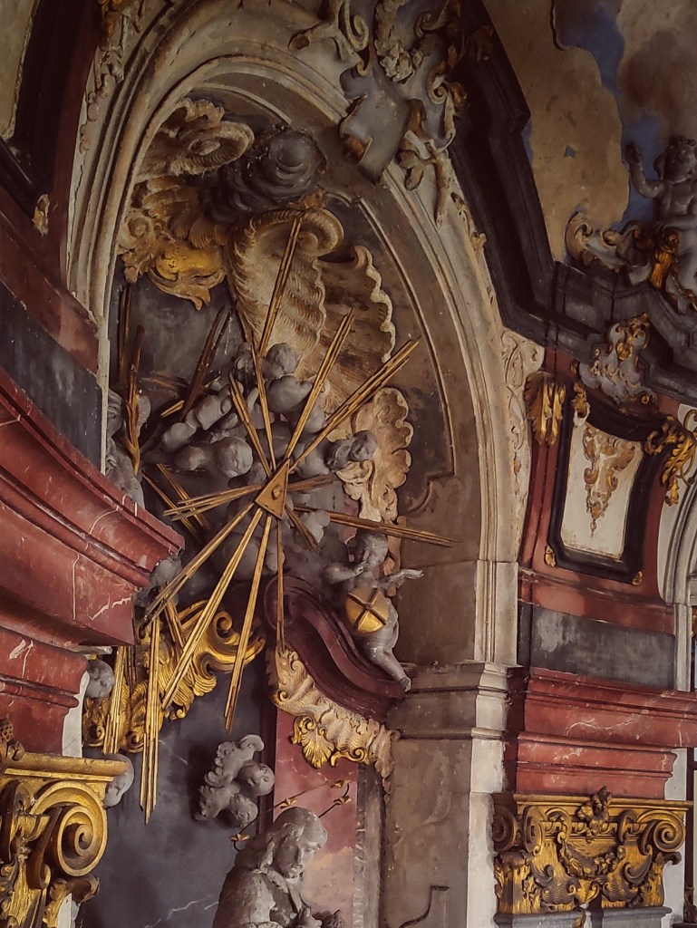 Po pečlivé dokumentaci jsme se vydali k našemu hlavnímu cíli, kterým byla kaple sv. Jana Nepomuckého. Po projití řady dalších místností jsme se najednou ocitli na postranním balkoně. Před námi se rozprostírala bohatě zdobená barokní kaple a my zůstali na okamžik stát se zatajeným dechem a jen tiše vnímali krásu.