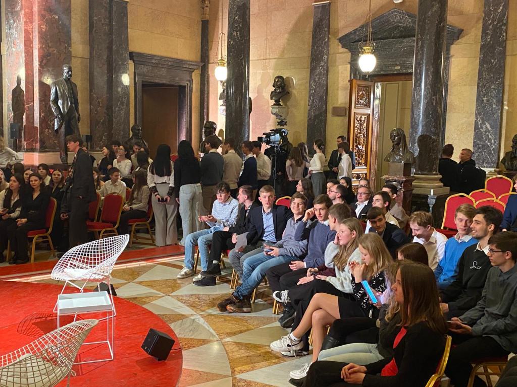 V Národním muzeu měli účastnice a účastníci diskusního vysílání chvilku rozchod. Po něm se však již všichni museli připravit, až je produkční odvede do „studia“. V překrásně ozdobené síni se studentky a studenti rozesadili a vyčkávali na pokyny. Těch nebylo mnoho: stačilo sedět během natáčení v klidu, nevrtět se a poslouchat. Zvláště nám bylo kladeno na srdce, abychom nikam v dvouminutových pauzách neodcházeli. Prý se už stalo, že školačky a školáci během přestávky odešli na toaletu. Samozřejmě se nestihli vrátit a v živém vysílání to působilo úsměvně.