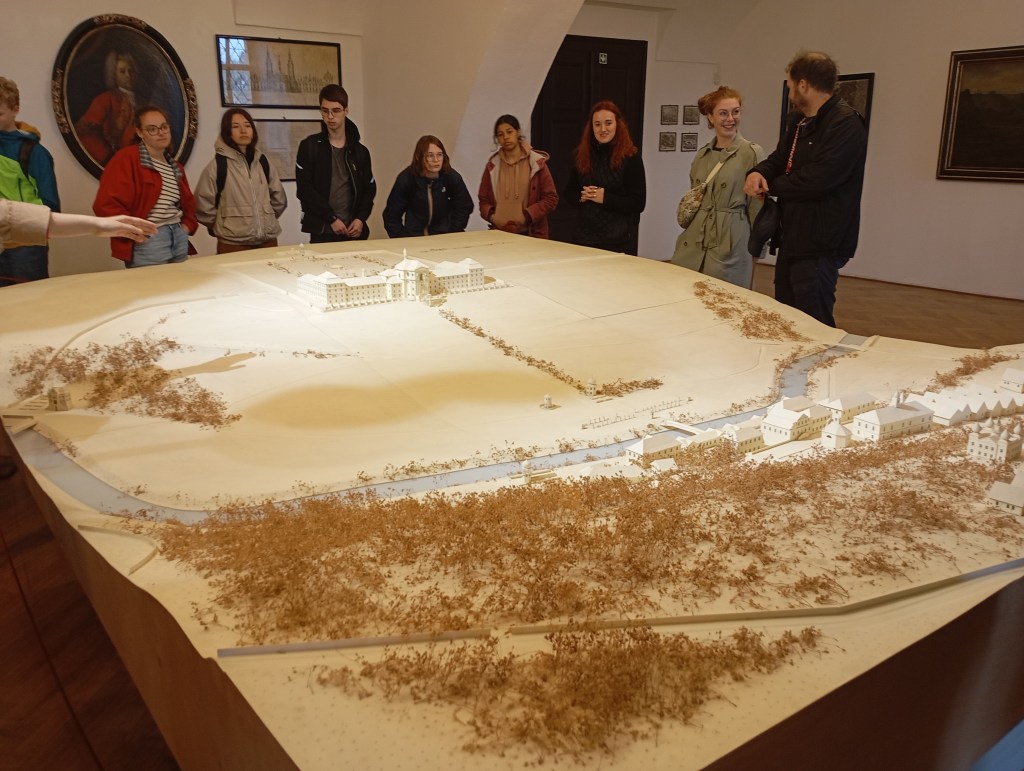 Průvodce, který nás měl se vším seznámit, hned v úvodu žertovně poznamenal, že doufá, že jsou ve skupině i nějací Češi, protože on francouzsky umí pouze dvě věty: Bonjour. (Dobrý den.) Je suis fatigué. (Jsem unavený.) A tak jsme další dvě hodiny strávili prohlídkou komplexu hospitálu, kterou naše paní učitelka Andrea Čechurová tlumočila do francouzštiny. Dozvěděli jsme se mnoho věcí o historii zakladatelského rodu Šporků i o budově samotné. Na závěr prohlídky jsme navštívili kapli a zhlédli alegorické sochy ctností a neřestí z dílny nejslavnějšího českého barokního sochaře Matyáše Bernarda Brauna.