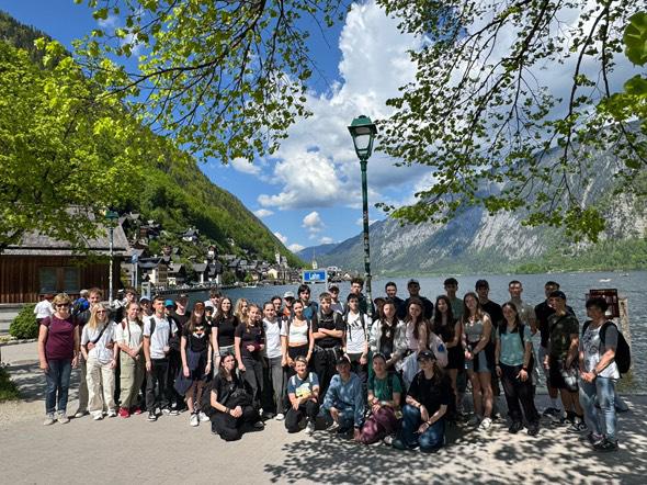 Když jsme ráno zastavili na protažení a snídani, všechny uchvátil pohled na nedaleké Alpy. To dozajista všechny probralo a po cestě už spousta žáků sledovala krásnou krajinu. Projeli jsme kolem Salzburgu, ale jeho prohlídka nás čekala až další den. Pokračovali jsme až za rakouské hranice do Německa. Jako první jsme se vydali autobusem po Rossfeld Panoramastrasse, vysokohorské silnici s nádhernými výhledy na alpskou krajinu. Pan řidič nám zastavil na parkovišti a my si výhled na hory i malebné údolí mohli vychutnat nejen přes okna autobusu. Dokonce padla i poznámka, že chaloupka v údolí vypadá jako chaloupka ze známé knížky Heidi, děvčátko z hor od Johanny Spyri. Poté jsme už jeli do Berchtesgadenu. Tam jsme došli na lanovku, která nás měla dovést na horu Jenner. Asi po 15 minutách cesty jsme se všichni v pořádku dostali k horní stanici lanovky. Zde se ale vrchol hory ještě nenachází, proto se většina v rámci rozchodu vydala na další 15 minutovou cestu k vrcholu. Na sraz se naštěstí všichni dostavili a my mohli vyrazit na zpáteční cestu lanovkou. Od stanice lanovky to byl kousek k malému přístavu na jezeře Königsee, kde jsme počkali na loď. Jezero je známé svou průzračnou vodou a taky, že tak trochu připomíná norské fjordy. Lodí jsme dopluli až k poutní kapli sv. Bartoloměje. Tam jsme mohli ochutnat místní ryby nebo se vydat na krátkou procházku podél jezera. Jak se zpátky dostaneme lodí, bylo na nás. Když jsme se všichni sešli u parkoviště, autobusem už to byla jen chvilka k solným dolům. Tam jsme dostali hornickou kombinézu a dobrodružství mohlo začít. První jsme jeli důlním vláčkem a poté už nás čekala prohlídka dolu. Nejlepší atrakcí pro mnohé byly dvě hornické skluzavky, po kterých jsme se mohli sklouznout. Silně ale skluzavkám mohla konkurovat krátká cesta lodí po podzemním jezeře. Večer jsme přejeli do Rakouska na naše ubytování.