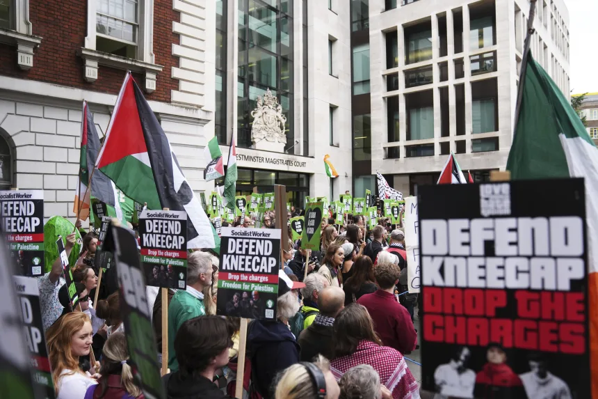 Severoirská kapela Kneecap zašla ale ještě dál. Vžívá se do celého konfliktu skrze svou nesnášenlivostí vůči Velké Británii a otevřeně prohlašuje, že Izrael páchá genocidu na palestinském lidu. Jeden z rapperů kapely – Liam Óg Ó hAnnaidh, známý spíše pod uměleckým jménem Mo Chara, byl obviněn z terorismu na základě vyvěšení vlajky Hizballáhu na koncertě kapely. Před soudem se utvořil obrovský dav na podporu rappera, lidé vyvěšovali irské a palestinské vlajky a skandovali frázi „Free Mo Chara“. [5]